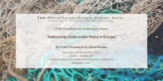 The webinar 'Addressing Underwater Noise in Europe' built on the science presented in EMB's Future Science Brief No. 7, and included presentations and a discussion session with Dr. Frank Thomsen and Dr. Sónia Mendes, Chair and Co-Chair of the EMB Working Group on Underwater Noise.