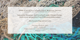 This webinar was on "Submerged volcanoes, and coral reefs under climate change: Early career perspectives from EMB Young Ambassadors". It will feature the research and experiences of the two outgoing EMB Young Ambassadors, Alba González Vega and Liam Lachs, who have served in the role since Spring 2019 and who are ending their 2-year term in Spring 2021.