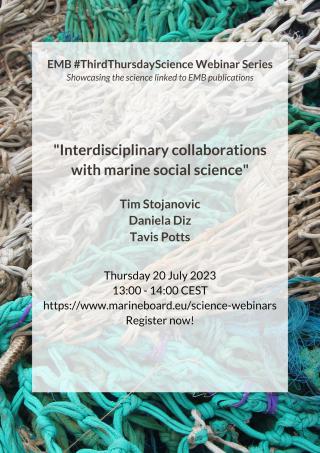 Interdisciplinary research is increasingly called for to solve global challenges and this webinar addressed how natural scientists can collaborate with social scientists to develop effective research projects. The webinar featured short talks from nine social scientists from the Marine Alliance for Science and Technology for Scotland (MASTS; Dr. Kay Barclay, Dr. Vincent Onyango, Dr. Remi Diaz, Dr. Meriwether Wilson, Prof. David Paterson, Prof. Beth Scott, Dr. Tim Stojanovic, Dr. Daniela Diz, Prof. Tavis Potts). They: (1) reviewed some of the lessons learned about the major challenges of doing interdisciplinary research; (2) introduced possibilities for natural scientists to partner with different social science disciplines; and (3) invited debate and discussion on productive approaches. This topic is linked to the science within the EMB flagship documents Navigating the Future V (2019) and the upcoming publications Coastal Resilience (October 2023) and Navigating the Future VI (Spring 2024). The following three speakers participated in a moderated Q&A session with the audience for the second half of the webinar: